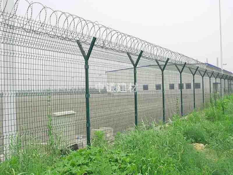 機場護欄網又稱機場圍欄網、機場隔離網、Y型安全防御護網,由Y型支架立拄,加強型焊接片網,網片中帶有Y型加強筋可增強護欄網的抗沖擊力。安全防盜連接件和熱鍍鋅刀片或者刺繩網組成,是強度和安全防御性級別很高的圍界護欄網產品之一。